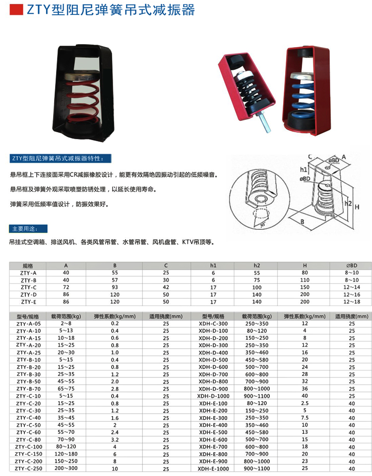 吊式弹簧小猪视频APP永久观看破解器采用冲压成型加工,配合合成橡胶零组件组合,外观为静电涂装处理,并经盐雾试验严格品管;结构美观,上下端均增加CR材质橡胶件,进一步隔绝振动及噪音。为吊挂式空调设备、风机及大小管路等各种吊式设备所采用。上海小猪视频在线观看下载免费污小猪视频APP永久观看破解器有限公司生产的ZTY型吊式弹簧减振器在市场上均有广大和良好的黄色成人小猪视频APP网站进入口。经过厂家多年的研发和改良,小猪视频APP永久观看破解效果基本可达95%—100%。